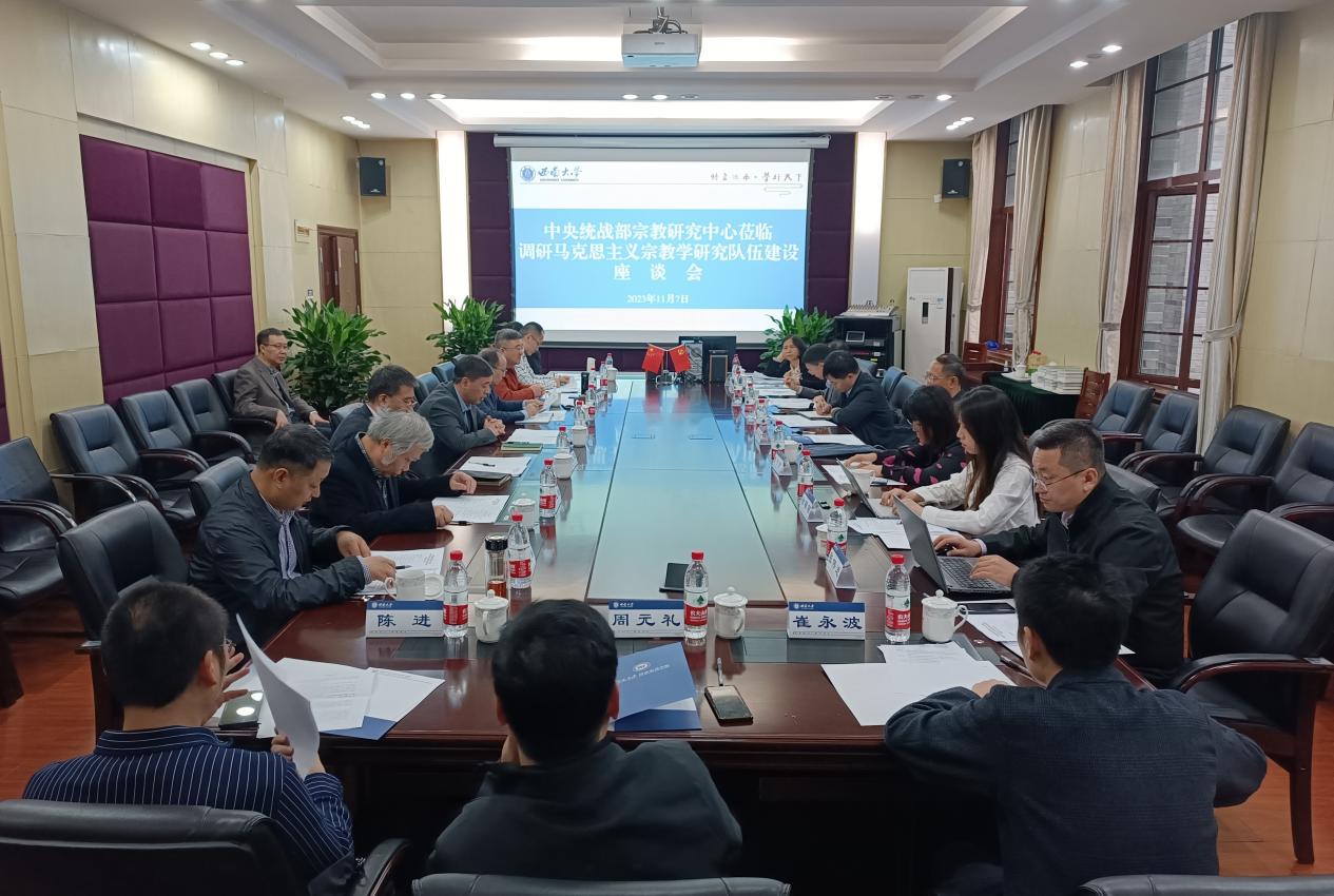 11月7日上午,中央统战部宗教研究中心副主任加润国来校调研马克思主义宗教学研究队伍建设情况。学校党委副书记潘洵陪同调研和座谈。