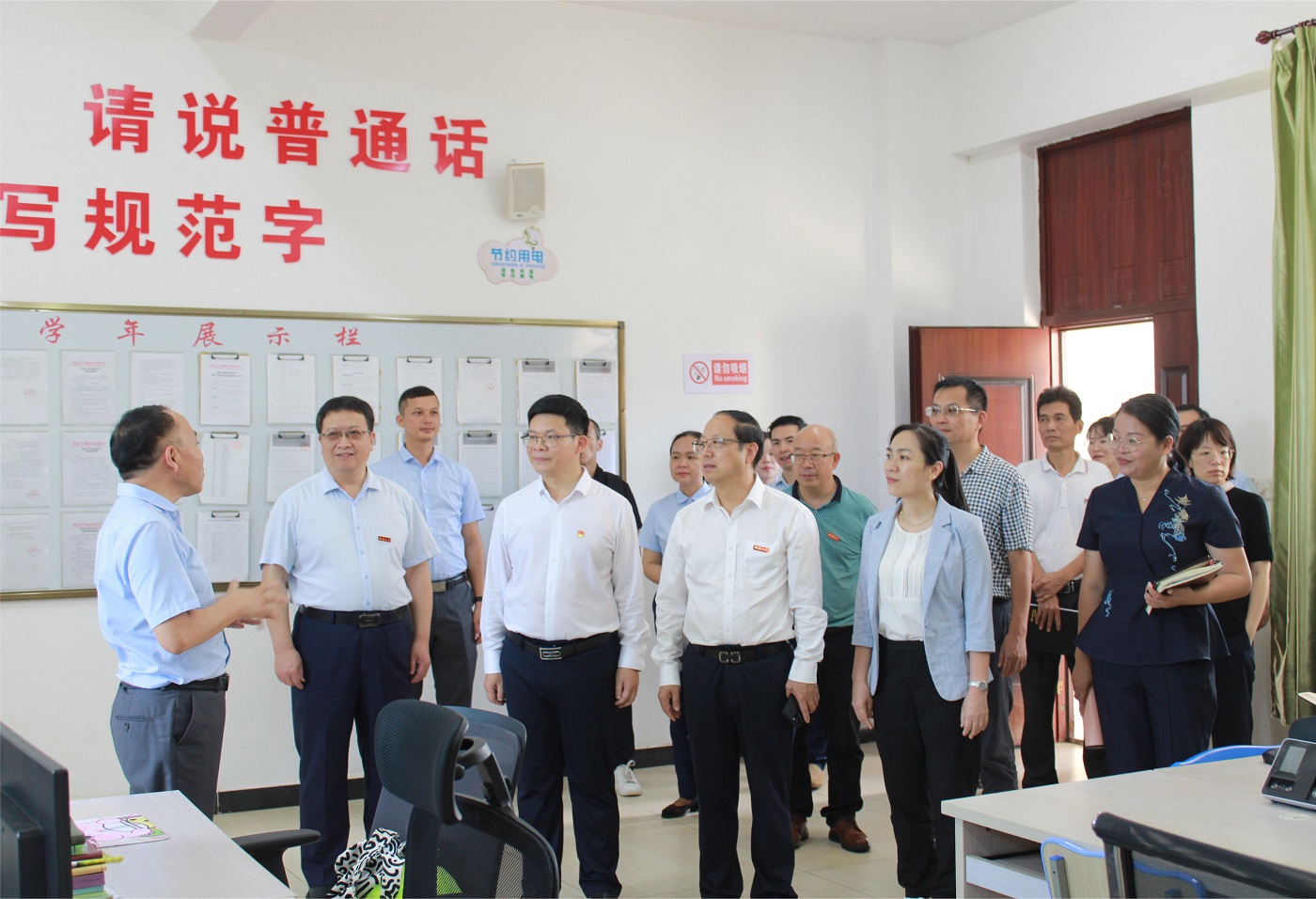 在临高县,县委书记文斌亲切会见周光明一行。文斌指出,西南大学临高实验中学是临高教育的一张亮丽名片,学校已经成为海南省的优质名校,在引领临高县基础教育发展中发挥了“领头羊”作用,成为了县优秀校长、骨干教师的“孵化园”。在副县长黄艳的陪同下,周光明考察了学校的学生食堂、小平科技创新实验室、美术活动室、舞蹈室以及图书馆;深入教师办公室了解学校教学常规落实情况;听取了县教育局以及三所合作学校校(园)长的工作汇报。