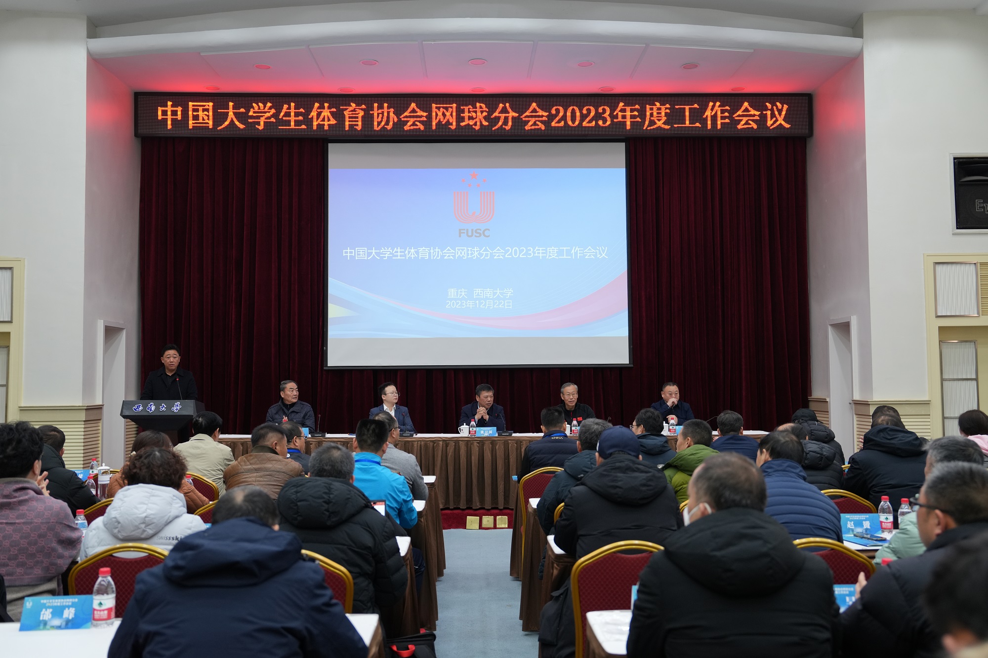 12月22日,中国大学生体育协会网球分会2023年度工作会议在学校金桂厅举行。