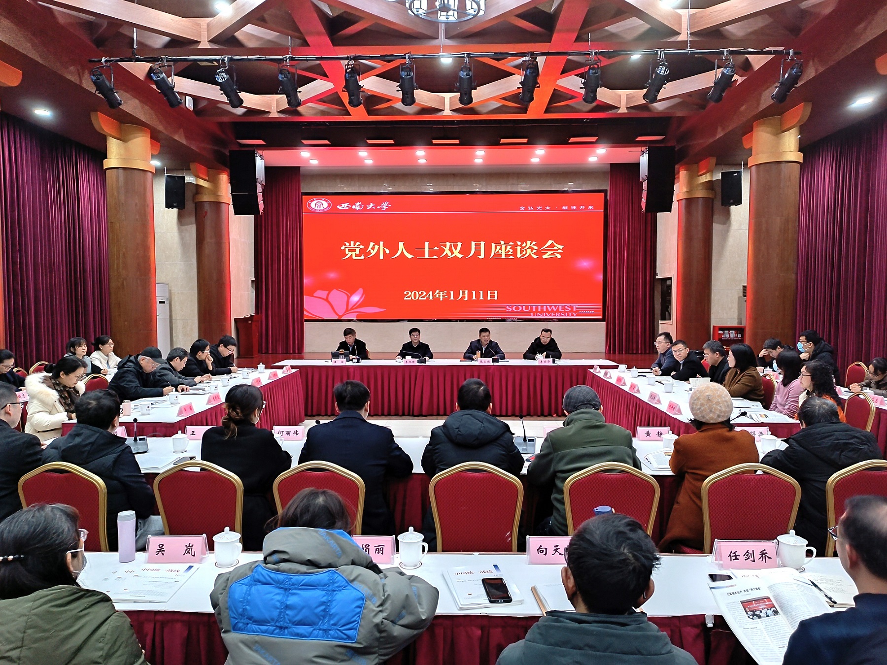 1月11日下午,学校召开党外人士双月座谈会,通报学校2023年工作,交流党外主题教育开展情况和年度特色亮点工作。党委书记李旭锋、校长张卫国出席双月座谈会。会议由党委副书记潘洵主持。