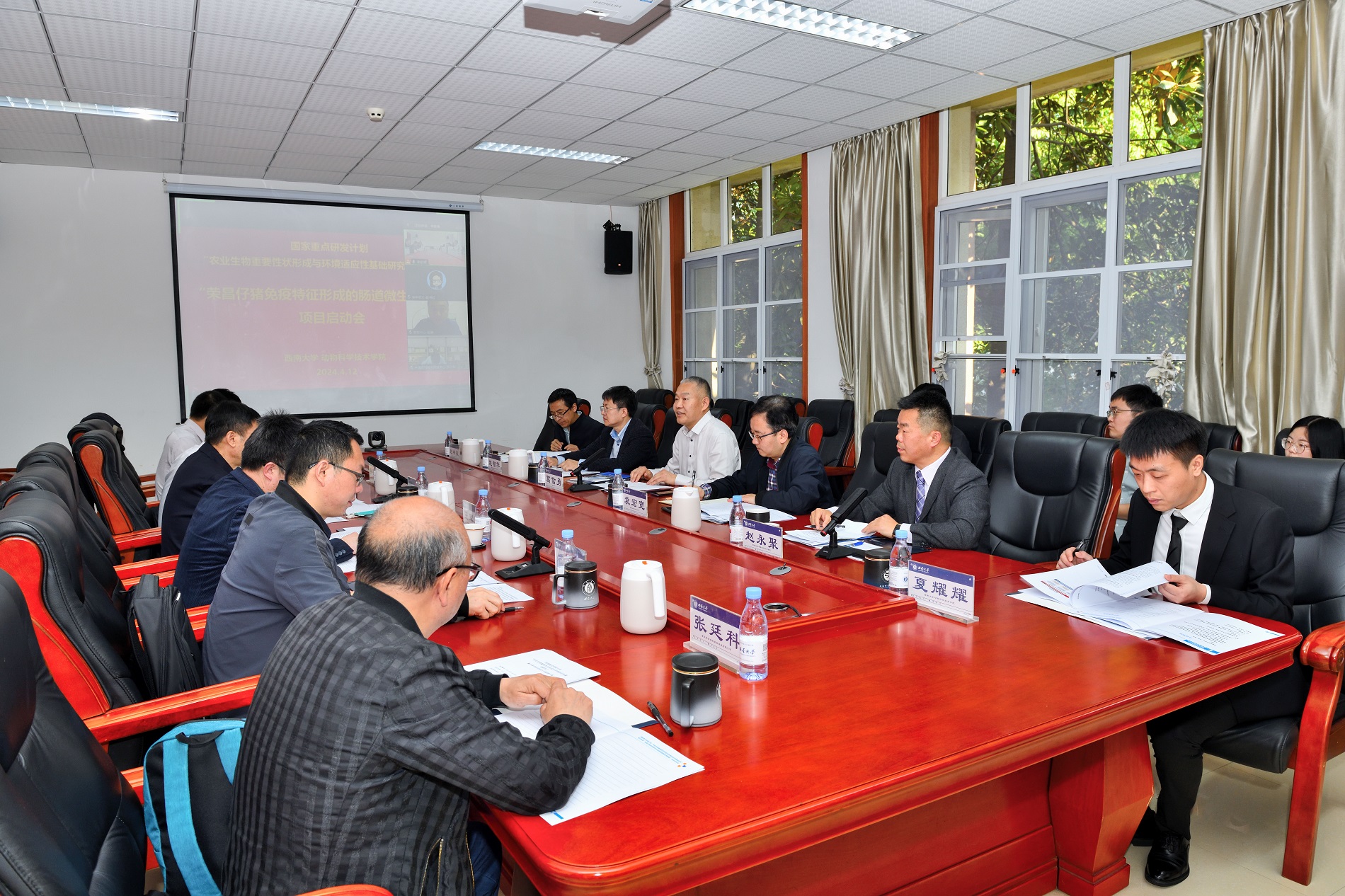 4月12日,国家重点研发计划“农业生物重要性状形成与环境适应性基础研究”重点专项“荣昌仔猪免疫特征形成的肠道微生物基础”启动会在学校召开。中国农村技术开发中心项目专员,学校副校长葛信勇,动物科学技术学院党委书记赵智华、院长赵永聚,科学技术处副处长袁宏宽,项目专家、用户代表及市科技局有关人员参加会议。