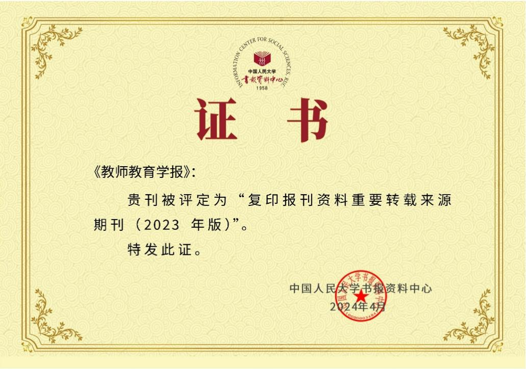 4月25日,中国人民大学评价研究中心正式发布了《复印报刊资料重要转载来源期刊(2023年版)》。学校《西南大学学报(社会科学版)》再次入选,《教师教育学报》首次入选。