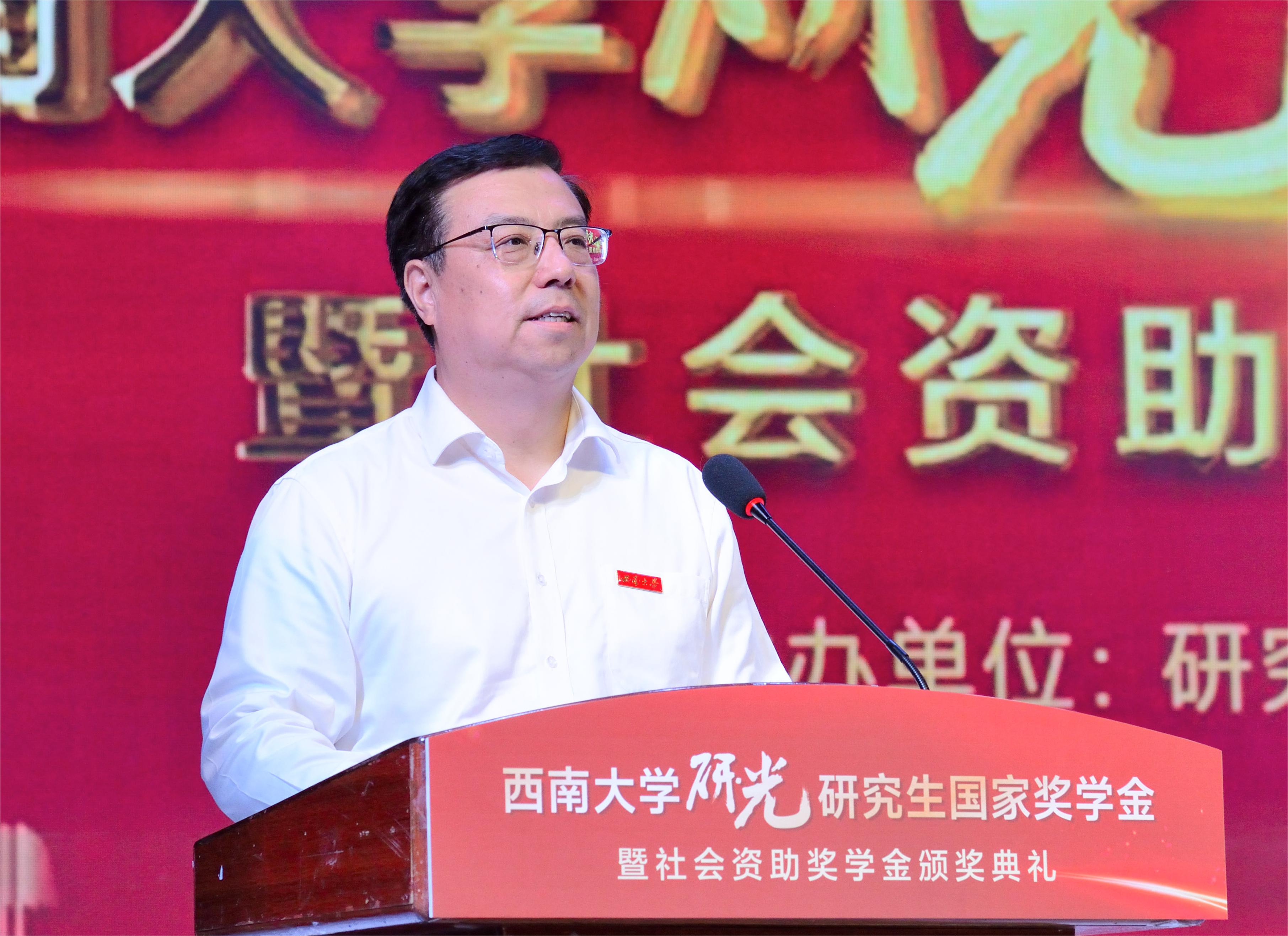 5月10日,学校在光大礼堂举行“研·光”研究生国家奖学金暨社会资助奖学金颁奖典礼。典礼以“追光逐梦,勇毅前行”为主题。校长王进军、党委副书记黄杰出席典礼。
