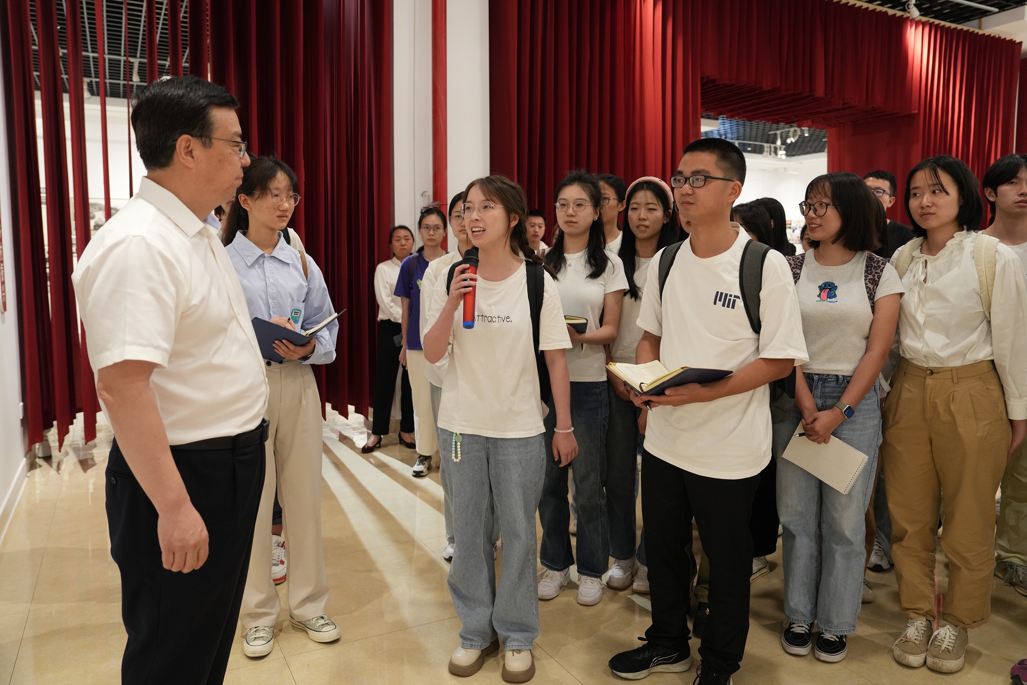 第二阶段,王进军带领同学们实地参观“从乡村建设到乡村振兴——西南大学强农兴农百年成就展”,讲述了百年乡村建设中的西大身影、乡村全面振兴中的西大作为、坚持服务乡村全面振兴的西大启示、聚焦瞄准服务乡村全面振兴的西大方位、加快实现服务乡村全面振兴的西大突破。他寄语同学们要锐意拼搏,在创新创造中挥洒青春汗水;开拓奋进,在基层舞台上绽放青春梦想;挺膺担当,在建功一线中贡献青春力量。参观授课过程中,“神农班”多位学子围绕精准服务城口县开设“农业妙招”云课堂所感、深度参与创新创业大赛奋斗所得、高效提升智慧农业拔尖创新能力所悟进行了互动交流。