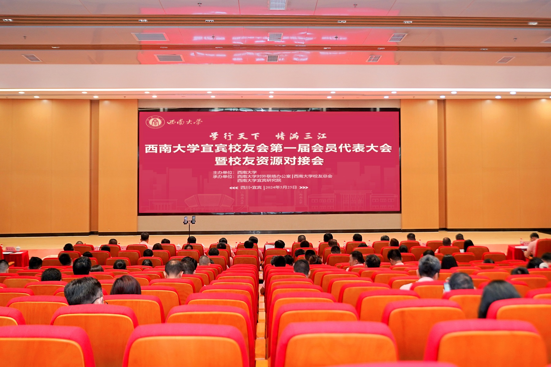 为凝聚宜宾校友力量,促进校友之间的交流合作,5月25日下午,西南大学宜宾校友会第一届会员代表大会暨校友资源对接会在宜宾研究院综合楼报告厅举行。学校副校长葛信勇,四川轻化工大学副校长高小林,宜宾职业技术学院院长伍小兵,原成都大学副校长、西南大学四川校友会会长邓和,乐山师范学院副校长陈范华,原宜宾市环保局局长、市人大常委会委员陈生元,学校相关单位、各兄弟高校校友会负责人出席会议,学校在宜宾校友近200人参加会议。会议由宜宾研究院直属党支部书记、院长陈金凤主持。