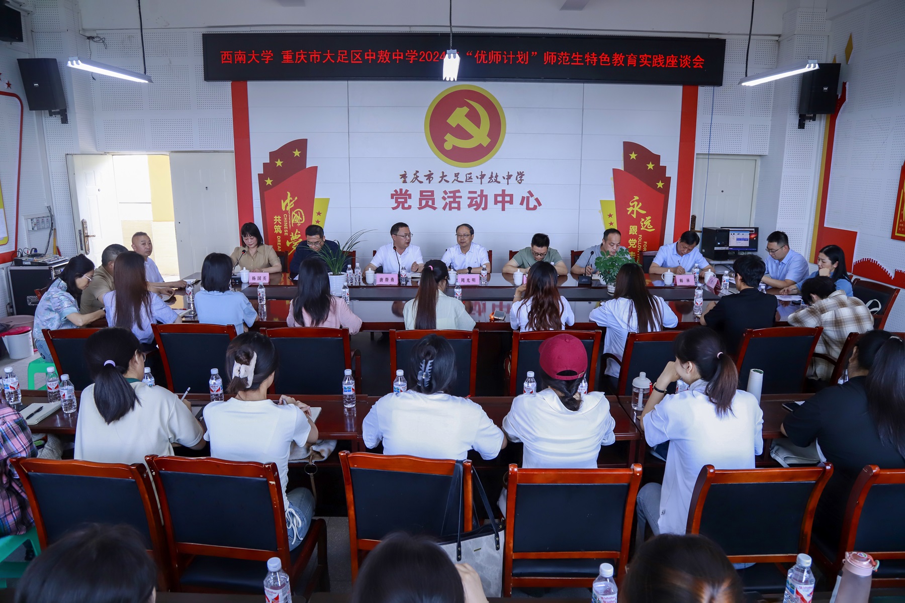 6月5日上午,副校长周光明带队赴大足区中敖中学考察调研,看望正在该校开展特设教育实践的学校首批“优师计划”师范生。大足区教育工委委员、区教委有关负责人,中敖中学全体班子成员及在该校参加特设教育实践的29位“优师计划”师范生出席相关活动。