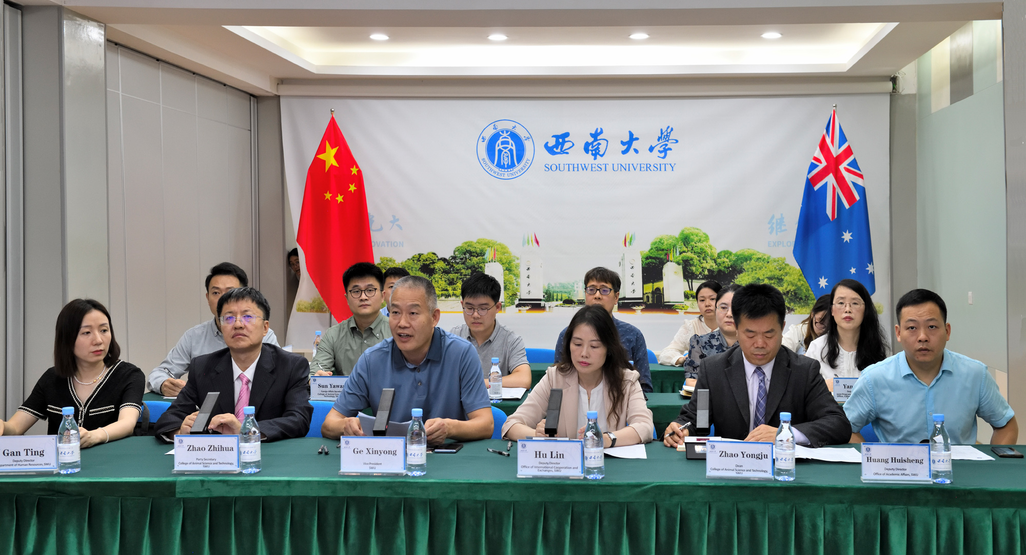 葛信勇在致辞中介绍了首届动物科学专业中外合作办学项目学生培养及毕业去向有关情况,充分肯定了项目取得的进展和成效,感谢各方人员在项目运行过程中的积极参与和大力支持。他表示,自2024级起,动物科学专业中外合作办学项目办学地点变更为荣昌校区,希望双方一同努力,继续做好项目的运行和人才培养工作。