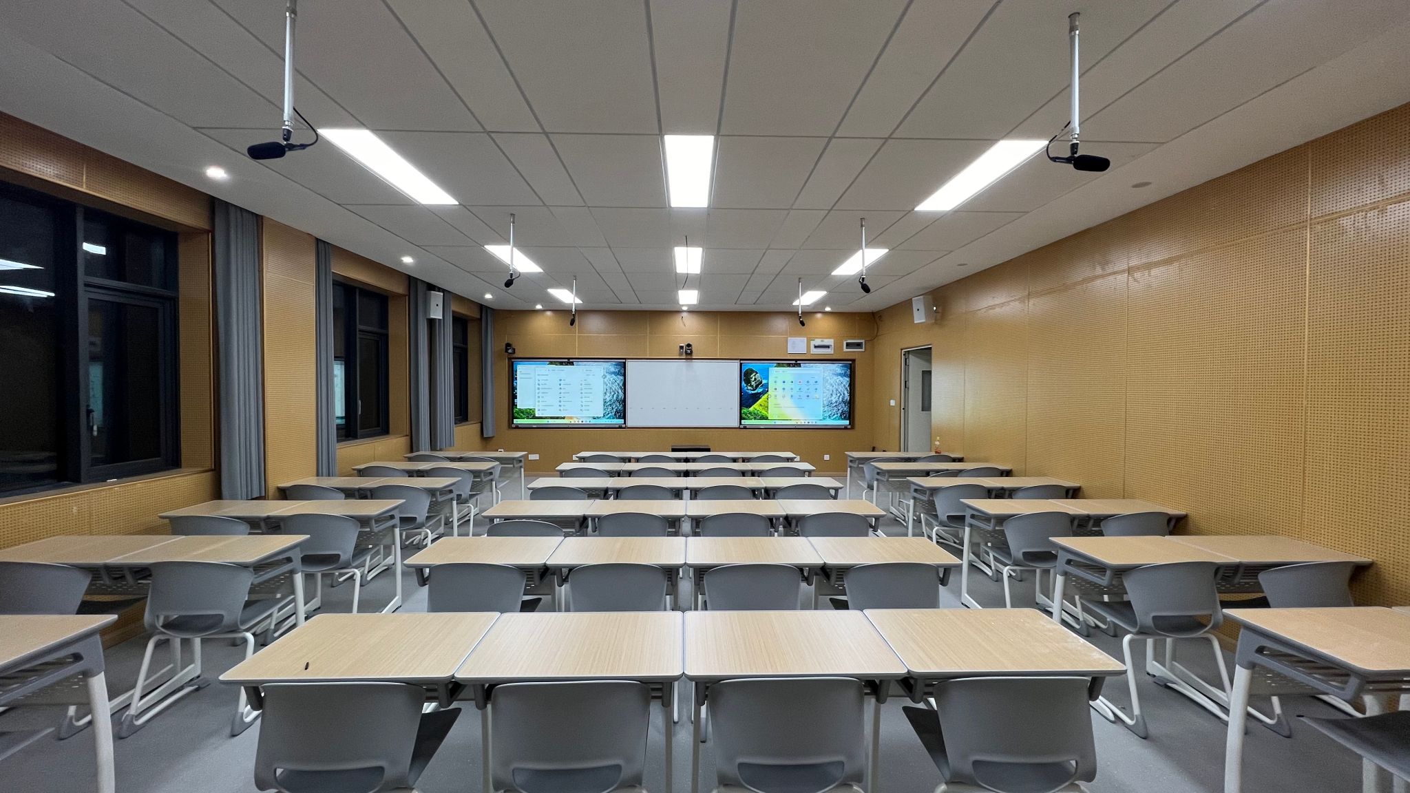 推进智慧教室落地。本科生院在推动巡视整改工作中,明确提出以智慧教室建设为突破口,推动学校教育中国式现代化进程,大力推动兆畦楼(第31教学楼)等智慧教育场地设施建设。日前,兆畦楼智慧教室验收推进会顺利召开。该项目涵盖了双屏互动智慧教室、多屏研讨智慧教室、精品录播智慧教室、沉浸式转译智慧教室等多种类型,共计36间智慧教室。其中,双屏互动教室配备智能书写屏,支持多样化展示课件和移动端无线投屏;多屏互动教室支持多屏互动、同屏异屏画面展示、文件发送等功能,充分展现小组讨论特色;精品录播教室具备多机位录播、课程直播、视频编辑等功能,满足高质量教学资源录制需求;沉浸式转译教室配备超大尺寸双投影机幕布和语音转译功能,支持多国语言实时翻译,为国际化教学提供了有力支撑。