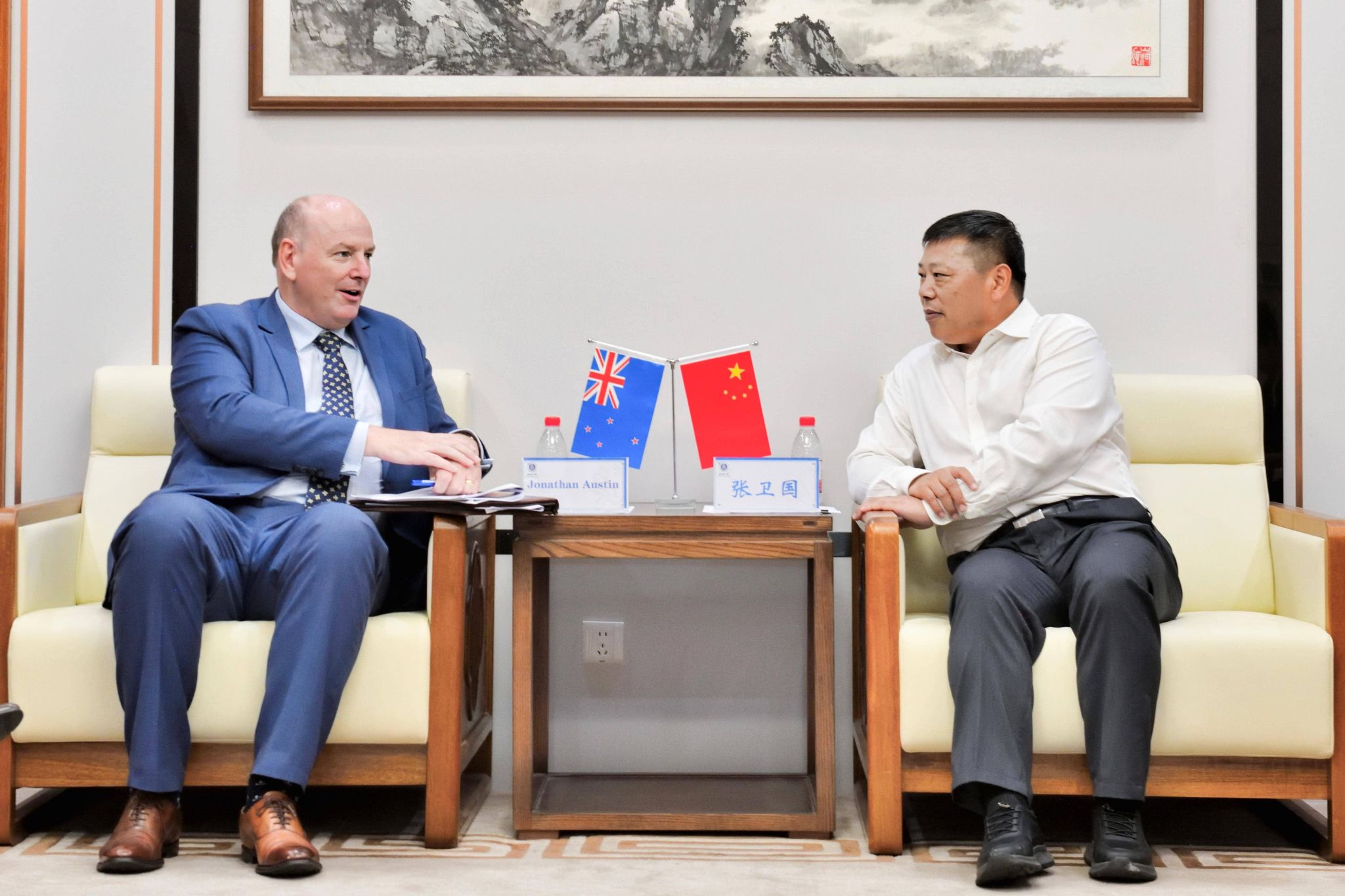 张卫国对于乔文博一行的到来表示热烈欢迎,并向对方介绍了学校基本情况及国际化建设的成效,回顾了学校与新西兰高校的合作历程。他表示,学校高度重视与新西兰高校的合作关系,希望进一步拓展与新西兰高校的合作领域,提升合作层次,实现优势资源共享与互补,更好助力两国教育与科研事业蓬勃发展。