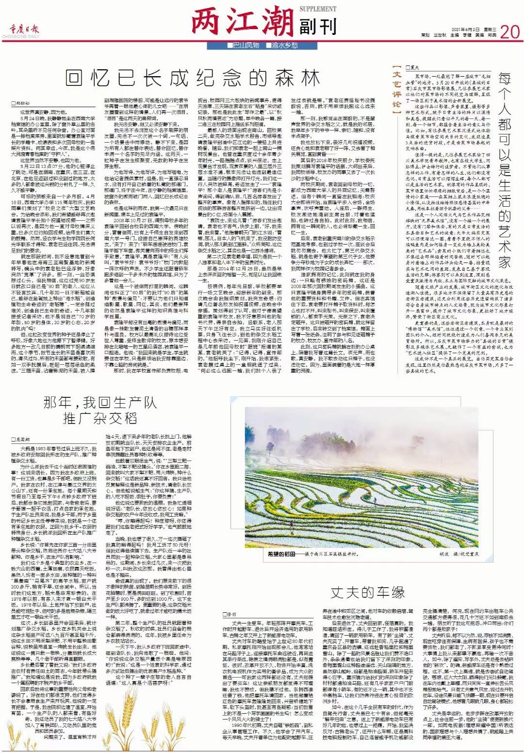 据悉,全国376件获奖作品中包括特别奖3件、一等奖72件、二等奖116件、三等奖185件,涵盖消息、评论、通讯、新闻专题、副刊作品、新闻摄影、新闻访谈、新闻直播、新闻专栏、系列报道、重大主题报道、典型报道、融合报道等20大类。其中的副刊作品类竞争十分激烈,一二三等奖各一二三篇,总计6篇。郑劲松获奖作品是缅怀西南大学杰出校友袁隆平院士的特写,创作于袁老去世第三天的5月24日深夜,2021年6月2日发表于《重庆日报》“两江潮”副刊,受到广泛关注和转发。