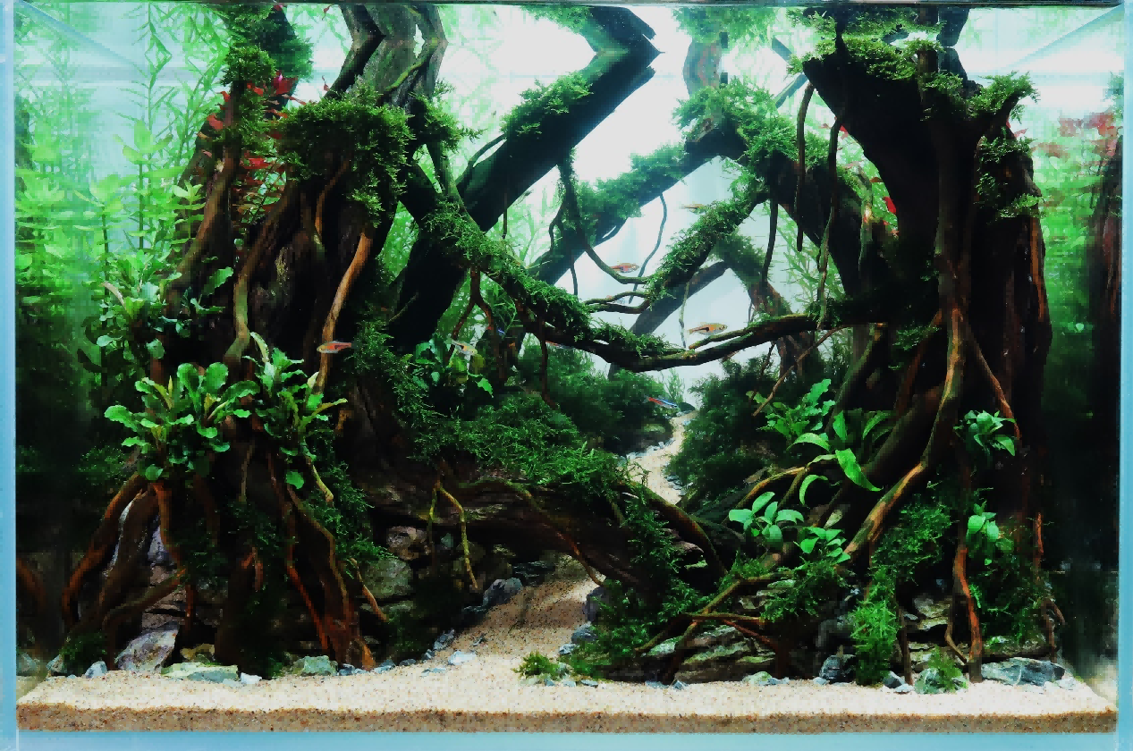 参赛队伍在水产学院多名老师的精心指导下,经过为期5周的角逐,全部获奖。其中高源、丁筱蕃同学的中缸石景作品《一线见云天》,张佳怡、孙星宇的中缸木景作品《绿野仙踪》,赵文静的小缸石景作品《别有洞天》,蒋云潇的小缸木景作品《郁林》获得特等奖。