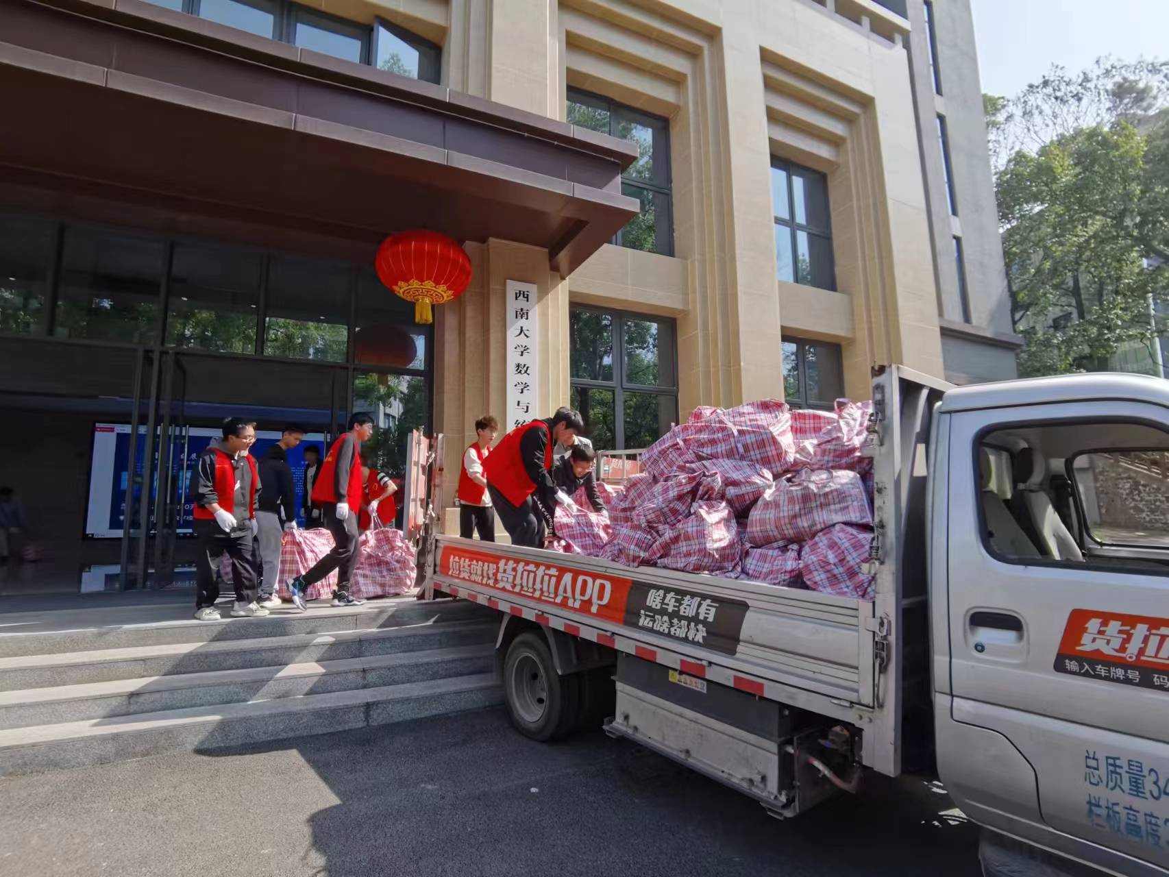 新学期,学院搬迁新大楼,图书资料室近18000册图书资料需要打包搬运至新大楼。3月16日-17日,学院全体党支部与团委“小数点”志愿服务队来到25教,投身“春日晒书”义务搬书活动,近100名师生党员、共青团员积极响应,组成了一支强有力的搬运队伍。志愿者们将打包好的几百包书籍、资料按照顺序传递下楼,志愿者们分工有序、干劲满满,半天就完成了18000册图书资料的搬运工作。