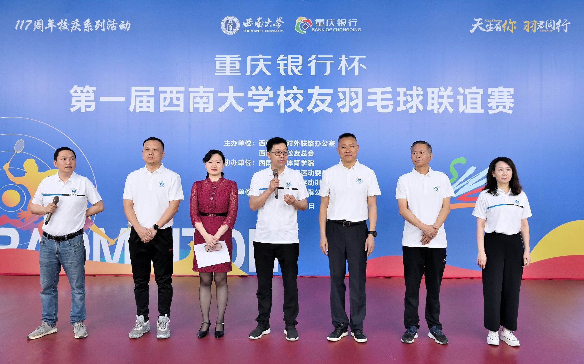 本次联谊赛由学校对外联络办公室、校友总会主办,学校体育学院、体育运动委员会,重庆市羽毛球运动训练中心承办,重庆银行股份有限公司北碚支行赞助。校友总会、贵州校友会、政法校友会、云南校友会、绵阳校友会、广州校友会、安徽校友会、綦江校友会、上海校友会、深圳校友会等10支代表队参加活动。