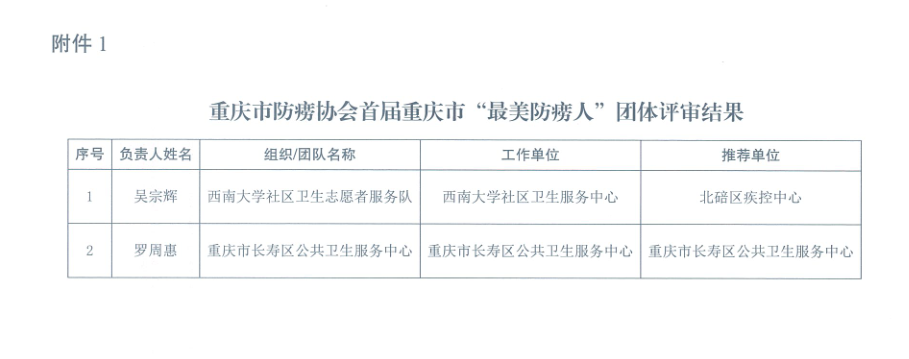 4月13日,重庆市防痨协会向社会公示首届重庆“最美防痨人”名单,评选出“最美防痨人”团体2个、“最美防痨人”个人6个,西南大学医院作为唯一的高校医院获得集体荣誉。