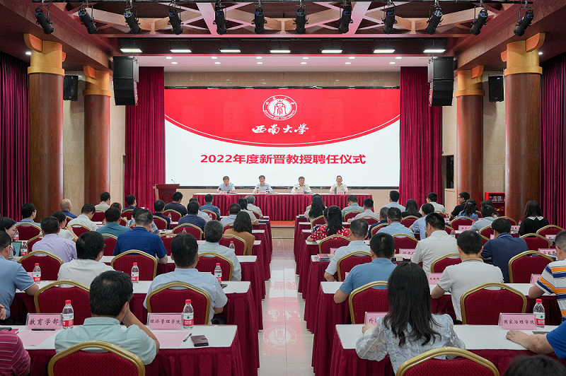 6月13日下午,学校在东方红报告厅举行2022年度新晋教授(研究员)聘任仪式。党委书记李旭锋、校长张卫国、党委副书记潘洵、副校长王志坚出席仪式,2022年度新晋教授(研究员),学校部分职能部门负责人参加仪式。仪式由潘洵主持。