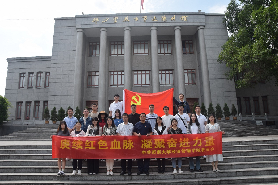 实地走访学。学院党委组织班子成员、两委委员、支部委员、师生代表先后赴红岩革命遗址渣滓洞、邱少云烈士事迹陈列馆、重庆石柱中益乡开展实地研学。各支部先后赴喻茂坚纪念馆、卢作孚纪念馆、校史馆、叶谦吉教授陈列室等地开展主题党日,结合学科专业实际,强化爱党爱国爱校教育。