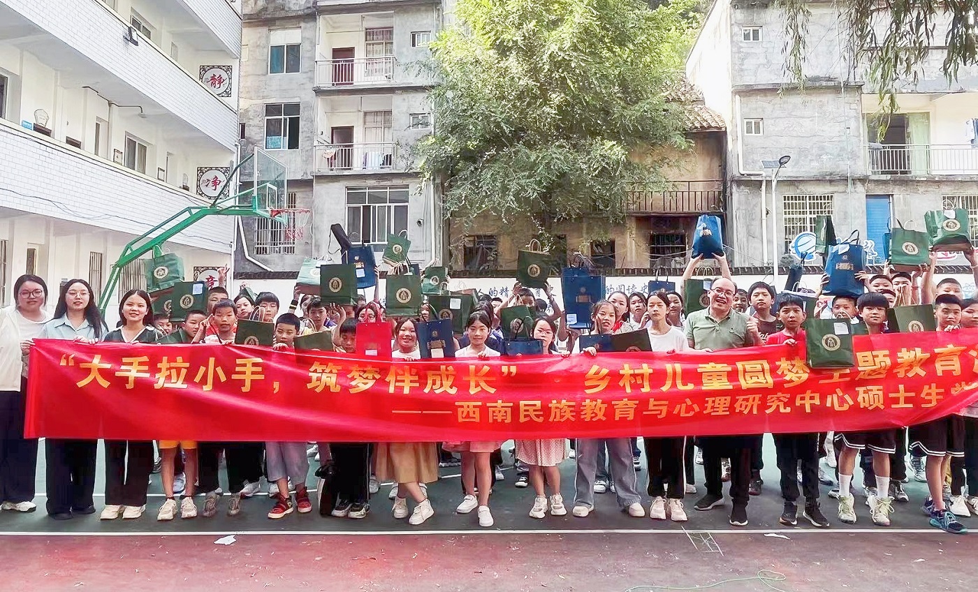 6月26日至27日,西南大学西南民族教育与心理研究中心(以下简称“西民中心”)成立“同心圆团队”,组织学生赴城口县蓼子乡第一中心小学(以下简称“蓼子一小”)开展“大手牵小手,筑梦伴成长”主题教育。一份最美的假期礼物被西大师生们送出,他们手捧“爱心”,为孩子们送去了温暖。