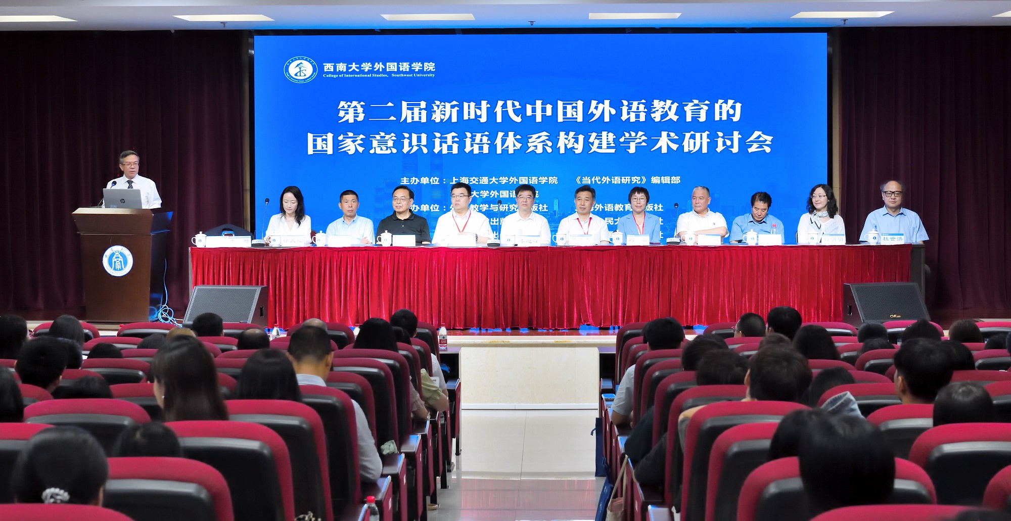 近日,由上海交通大学外国语学院、《当代外语研究》编辑部与学校外国语学院联合主办的第二届新时代中国外语教育的国家意识话语体系构建学术研讨会成功举办。本次研讨会以“国家意识、中国叙事与国际传播”为主题,由专家论坛及5个分论坛组成。来自大连外国语大学、天津外国语大学、上海交通大学、四川外国语大学等高校及相关领域核心期刊编辑部的10余名专家学者出席本次会议并作主旨发言,百余位学者、研究生参与专题分论坛论文宣读和讨论,百名学者借助线上直播参加本次研讨会。