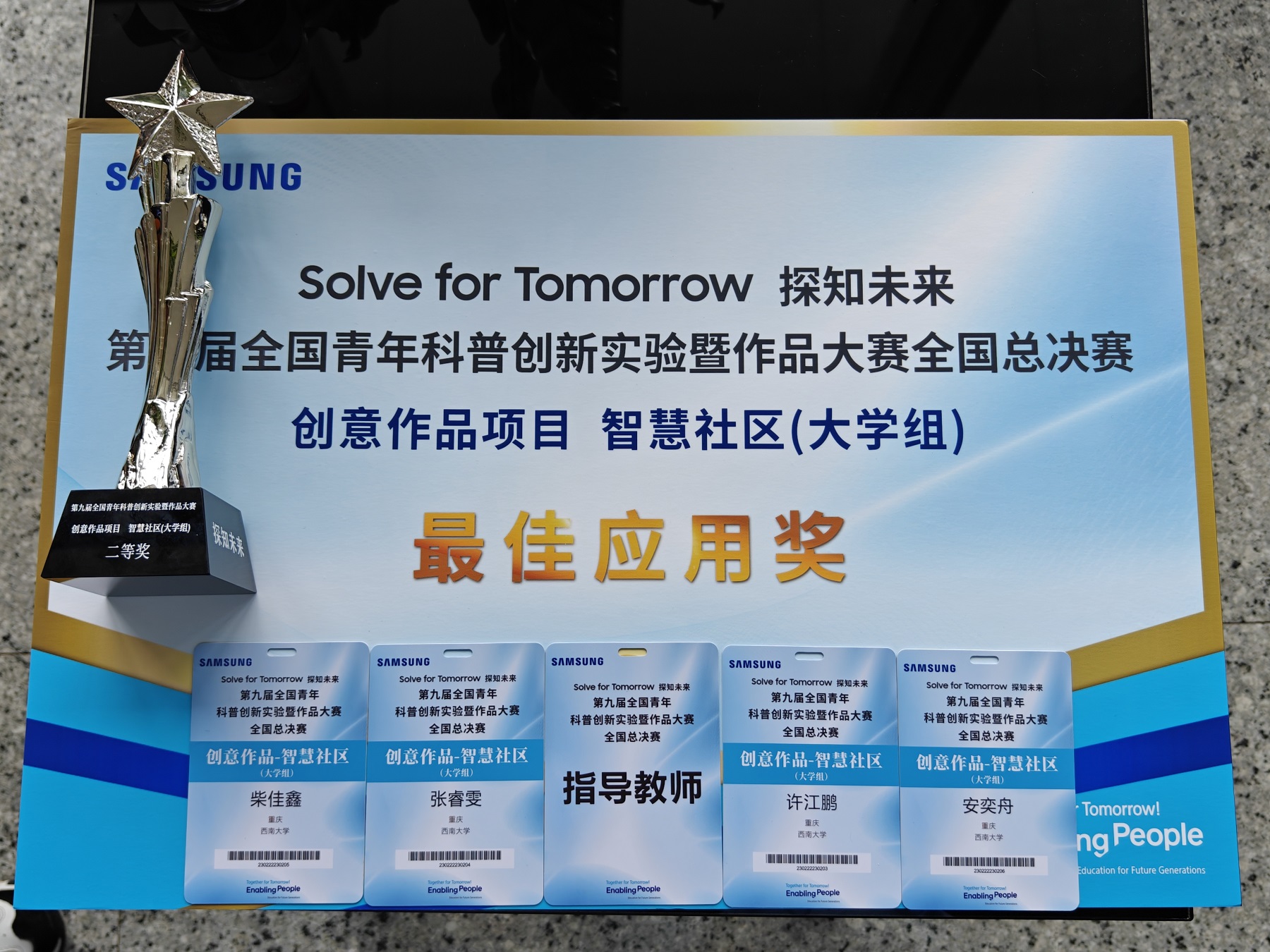 近日,由中国科协主办,中国科技馆、中国科协青少年科技中心联合承办的第九届全国青年科普创新实验暨作品大赛全国总决赛在辽宁圆满落下帷幕。学校许江鹏等4名研究生凭借作品《智慧乡村科技站—基于生物大数据的粮食安全与农业废弃物再资源化》代表重庆赛区出战,分别斩获“智慧社区”(大学组)二等奖及最佳应用奖的好成绩。这也是学校在科普创新类竞赛中首次展露风采。
