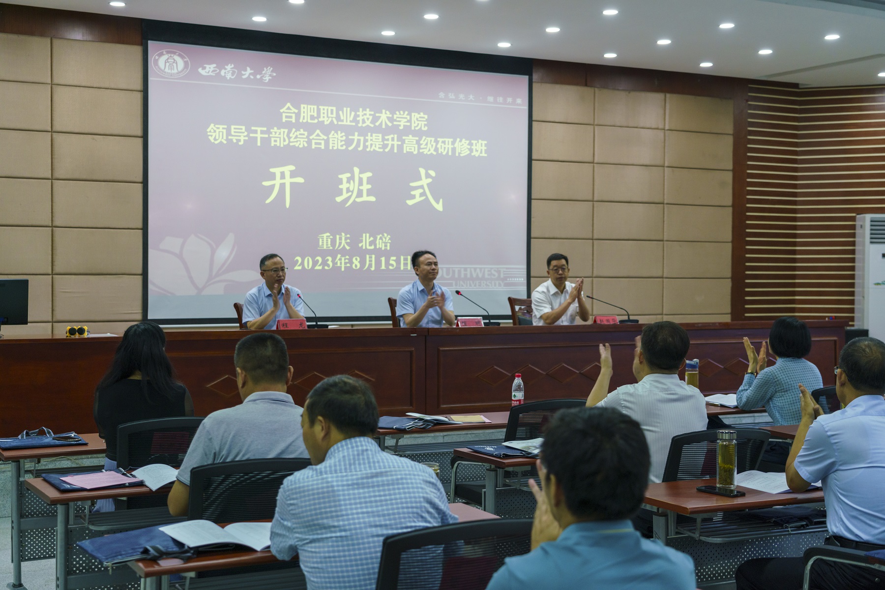 8月15日,合肥职业技术学院领导干部综合能力提升研修班在学校顺利开班。合肥职业技术学院党委副书记、校长檀明,学校副校长赵国华出席会议并讲话。开班式由继续教育学院院长程龙主持。