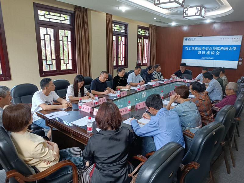 近日,农工党重庆市委会专职副主委张昌红莅临学校调研,并与农工党西南大学委员会党员进行座谈交流。学校党委副书记潘洵与张昌红进行会谈。